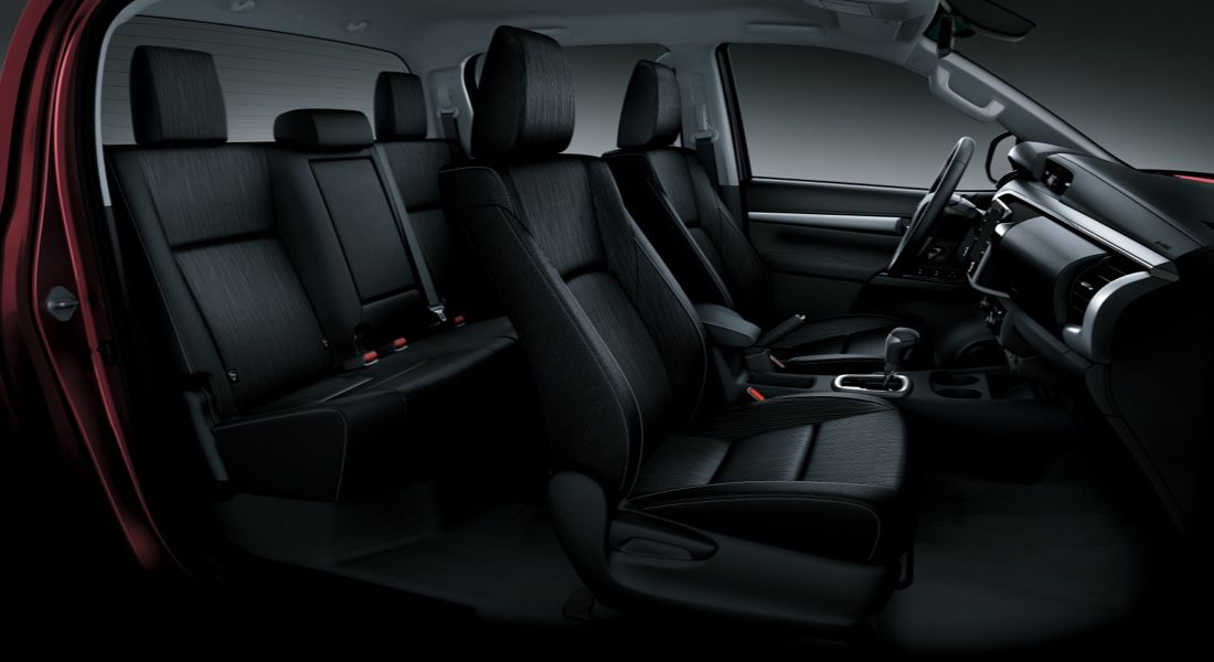 • Seating: Roomy double-cab layout for 5 occupants, with premium leather or TRD-trimmed upholstery and sporty red stitching detailing. Driver’s seat powered and highly adjustable.